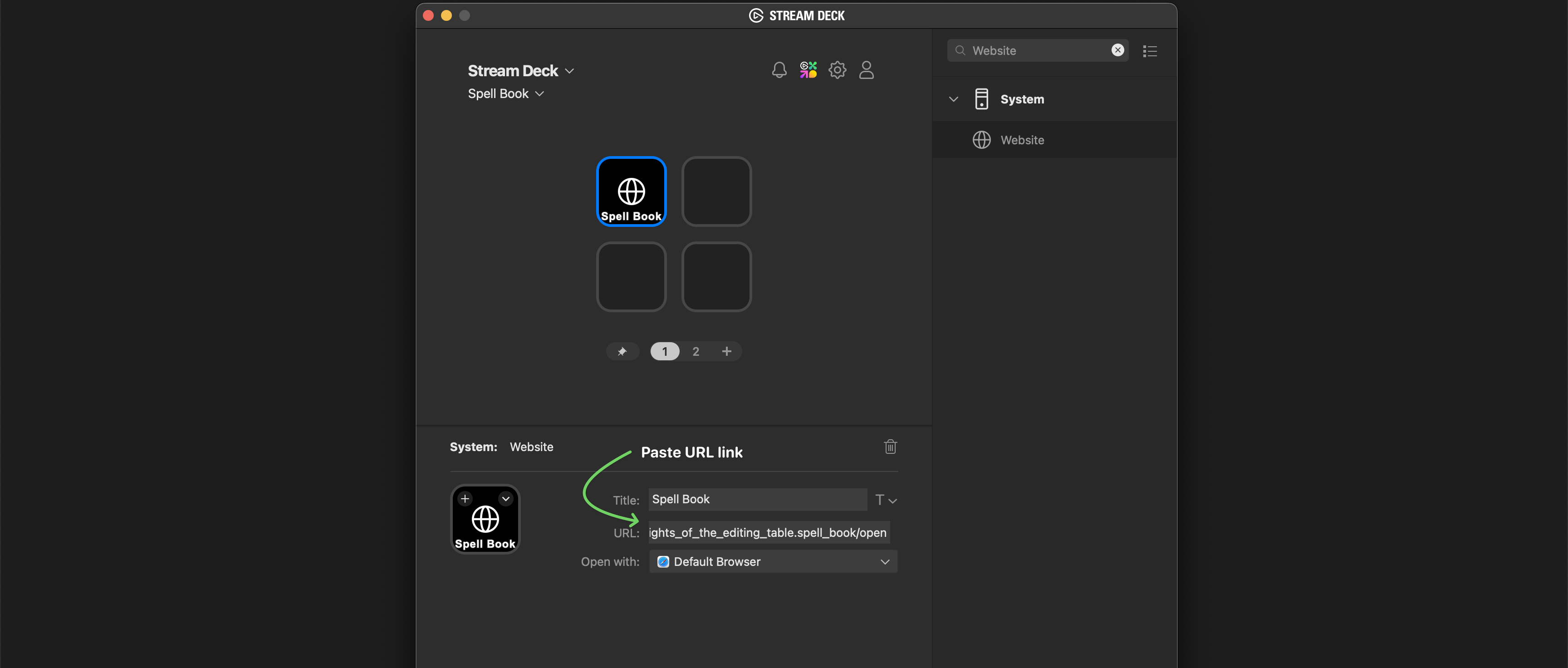 <figure><img src="https://270111504-files.gitbook.io/~/files/v0/b/gitbook-x-prod.appspot.com/o/spaces%2F-LqQuRw1JZNewsp-NrzE%2Fuploads%2FBTgJUqFOlrax17VSVNWr%2FSpell_Book_StreamDeck_02.png?alt=media&#x26;token=cb093fe6-ebba-4e00-b1bd-4c2a1c124032" alt=""><figcaption></figcaption></figure>